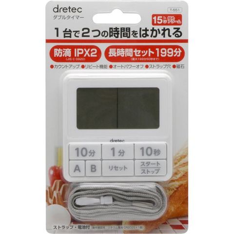 T551WT (株)ドリテック dretec ダブルタイマー ホワイト