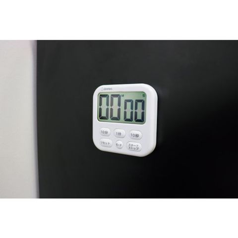 ・キッチンクロックとしても使える時計機能付タイマーです。・見やすい大画面表示(63×35mm)です。・簡単に時間をセットできる6キータイマーです。・立てかけスタンド付です。・壁掛けフック付です。・取り付け便利な強力マグネット付です。