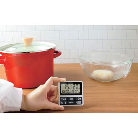 ・1台で2つの時間をはかれるタイマーです。・濡れた手でも使いやすい防滴タイプです。・最大199分50秒まで長時間セットできます。・大画面LCD(58×30mm)です。・取り付け便利なマグネット付です。・オートパワーオフ機能付です。