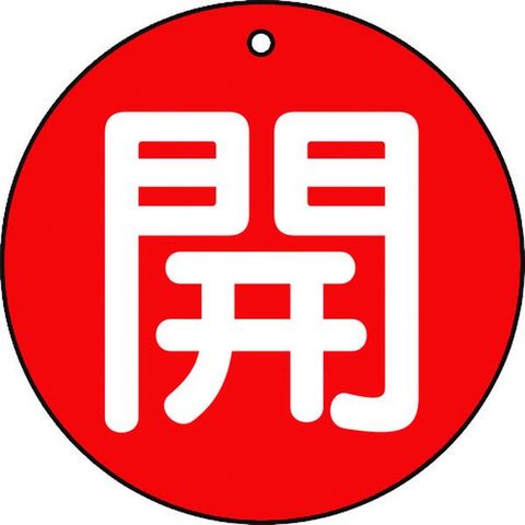 ・色:赤・表示内容:開・縦(mm):50・横(mm):50・厚さ(mm):2・色(開):赤・摘要:開・赤地(白文字)・内容:開・赤地(白文字)・取付仕様:4mmФ穴上1・形状:丸型