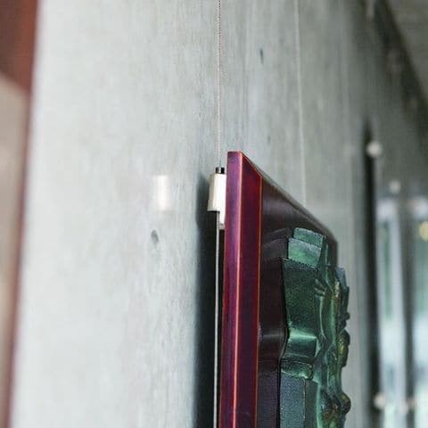 ・ワイヤーをピンから差し込むだけでしっかりと固定。・額吊りやパネル吊りに。