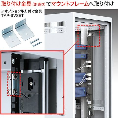 ・19インチサーバーラックへ簡単取付け可能です。・タップ本体に取り付け穴があるので、ネジで直接取付可能です。・オプションのL型取付け金具でマウントフレームへ取付け可能です。・通電表示LEDランプを標準装備してます。・抜け止め式差込口採用で、不意の抜け落ちを防止します。