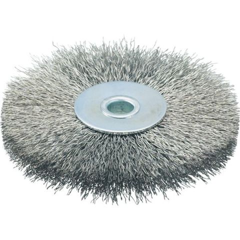・ブラシ形状が円盤型で、外面に向かって放射状に毛が植わっています。・円盤状のブラシの中心に穴が開いていて工具、機械などに同径の軸がついていれば取り付けが可能です。