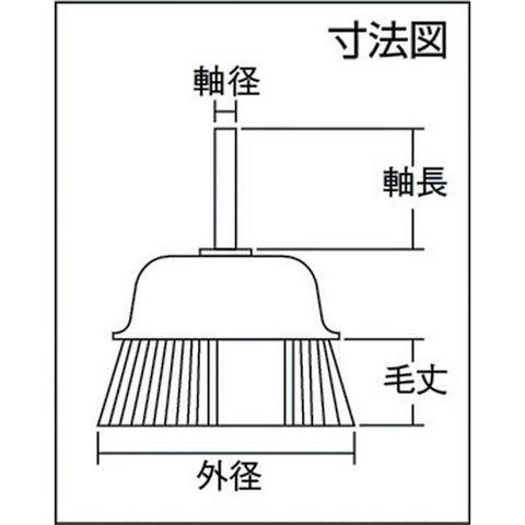 ・線径(mm):0.3・毛材:ワイヤ鋼線・外径(mm):50・毛丈(mm):25・軸長(mm):35・軸径(mm):6・最高使用回転数(rpm):3000