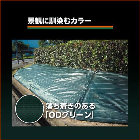・幅(m):3・長さ(m):50・厚さ(mm):0.5・引張強度:縦1150N/5cm、横850N/5cm・引裂強度:縦350N、横350N・色:表面ODグリーン、裏面ブラック