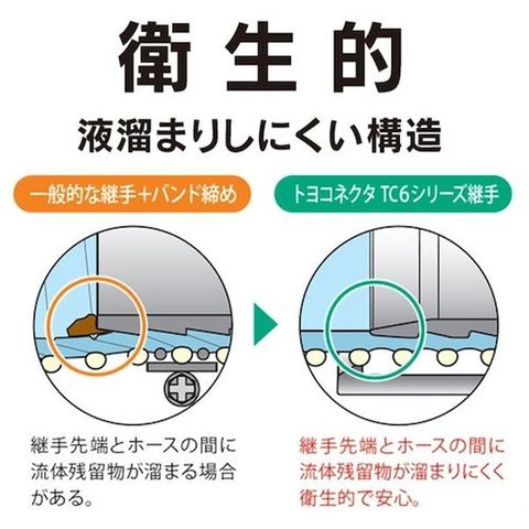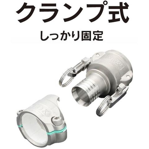 ・ホースと継手の間で起きる流量不足や流体漏れ、ホース抜けなどのトラブルを防止します。・【漏れ・抜け防止ホース継手】流体漏れやホース抜けなどの生産トラブルを防止し、安定生産が可能なホース用継手です。・【取付作業の標準化】専用クランプをすき間なく締め切るだけで、 均一な取付作業が可能です。また、ホースバンドのように増し締め作業も不要です。・【安全性】レバー(アーム)を簡単にロックでき、不意なレバー(アーム)のゆるみ、外れを防止します。・【リスク低減】 振動、地震による漏れ抜けなどの配管トラブルを防止します。・【リユース可能ホース継手】再利用の際は継手内部の部品を交換するだけで再利用できます。・カムロックと互換性があります。