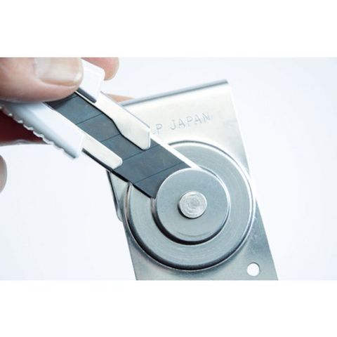 ・カッターケースにセットされている折り刃ガイドにカッターの刃を差し込んで折ると、「パキッ」っと簡単に刃が折れます。・折れた刃は、そのままケースの中に入るので便利です。・実用新案取得済みです。・クリップ式ですのでベルトや作業袋にも取り付けることができます。