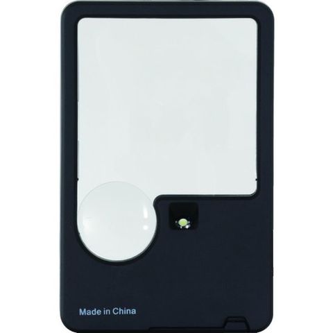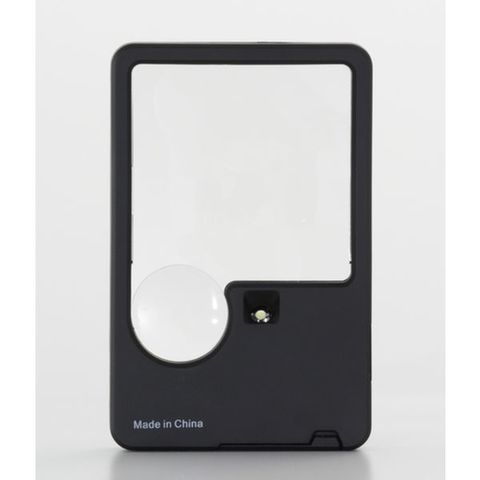 ・カード型でコンパクトですのでポケットへの収納に便利です。・45mm×45mmの2倍レンズとΦ20の5倍レンズが一つになっています。・LED付ですので手元が暗くても使えます。