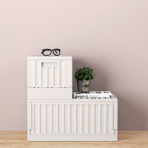 ・折りたたみ式でスペースを取りません。・腰かけ可能で、オフィスや家庭等様々な場所で収納に使用できます。・海上輸送コンテナをイメージしたデザインです。