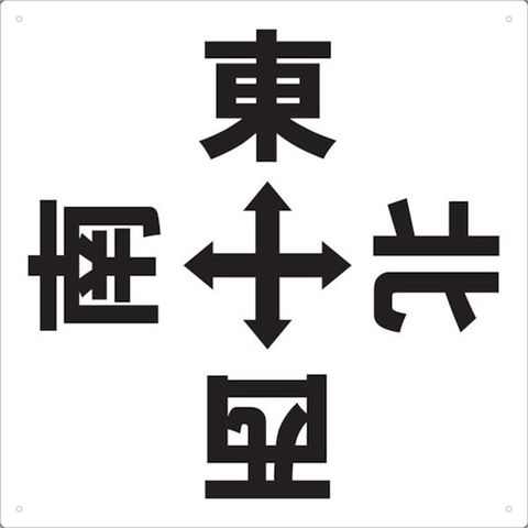 ・表示内容:「東西南北」・取付仕様:穴4ヵ所ビス止め(ビス別売)・縦(mm):420・横(mm):420・厚さ(mm):1・穴径(mm):4