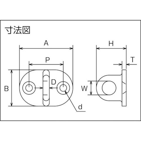 ・使用荷重(kN):0.15・A(mm):37・A1(mm):37・D(mm):4.5・A2(mm):24・B(mm):26・H(mm):20.5・P(mm):24・W(mm):10・d(mm):4.2・T(mm):3