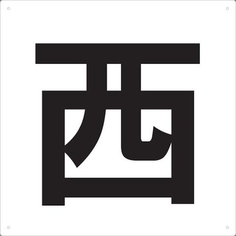・表示内容:「西」・取付仕様:穴4ヵ所ビス止め(ビス別売)・縦(mm):420・横(mm):420・厚さ(mm):1・穴径(mm):4