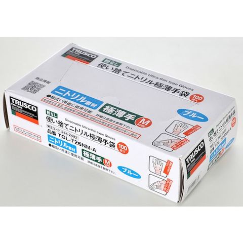 TGL726NSA トラスコ中山(株) TRUSCO 使い捨てニトリル極薄手袋 粉無S ブルー (100枚入)