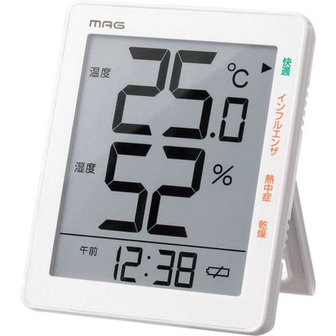 TH105WH 温湿度計 デジタル 時計 環境目安 置き掛け兼用 スタンド ホワイト TH-105WH