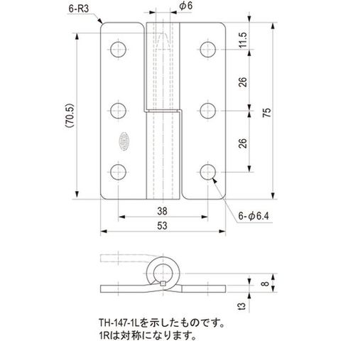 TH1471R (株)栃木屋 栃木屋 抜差クリーンヒンジ 全長75×幅53×厚さ3mm