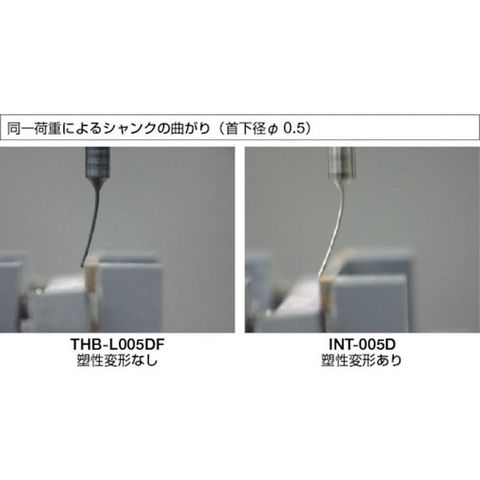 ・精密仕上げ加工用です。・特殊高硬度処理ステンレスシャンクにより、しっかりとした手応えと、しなやかさを兼ね備えたシャンクを実現します。・表層硬度(Hv1000以上)を超硬並に近づけることにより、変形や折損を大幅に低減します。・弾力性のアップにより、折損しにくいシャンクを実現します。・シャンクの曲がりが少ないため、精密加工が可能です。・高荷重での作業が可能なため、加工時間が大幅に短縮します。・従来品に比べ、約2倍の圧力での加工が可能です。(当社比)