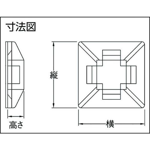 ・縦(mm):26.1・横(mm):26.1・高さ(mm):6.0・使用結束バンド幅(mm):~8.0・最大結束径(mm):使用結束バンドによる・固定方法:粘着テープ