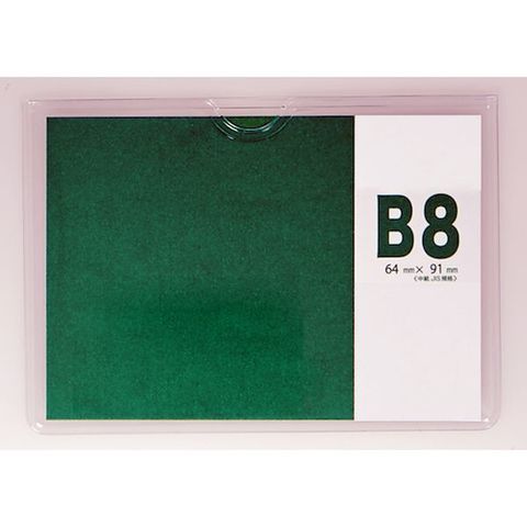 ・色:透明・タイプ:B8・縦(mm):70・横(mm):100・厚さ(mm):0.4・内形寸法(mm)縦:67・内形寸法(mm)横:96・規格:B8・収納用紙寸法(mm):64×91