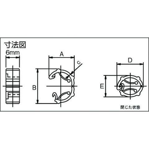 ・色:白・最大結束径(mm):5.5~8.0・A(mm):14.6・寸法(mm)B:18.5・C(mm):1.1・D(mm):13.8・E(mm):12.4・結束可能径(mm):5.5~8.0・頭径(mm):12・サイズ(mm):8・B(mm):18.5