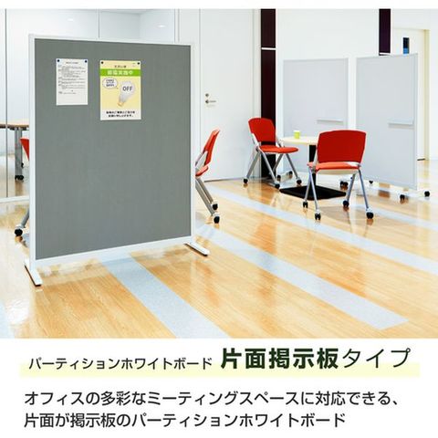 ・ホワイトボードとして使用できるパーテーションです。・片面は掲示板としてご使用できます。・キャスター付なので、移動もレイアウト変更も自由自在です。・ホワイトボード面をミーティングスペース側に、掲示板面を通路側に設置することで、効率よくスマートに空間を仕切ることができます。・掲示面は、マグネットとピンの両方に対応しています。・ホワイトボード面は、マグネットに対応しています。・マグネットトレイの位置も自由に変更できます。・「書く」「貼る」「仕切る」マルチに使うことができます。
