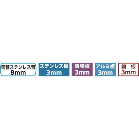 ・刃径(mm):26・ふところ深さ(mm):35.5・シャンク形状:三面取(ストレート)・シャンク径(mm):10・刃厚(mm):2.1・有効切削能力(mm):パイプ曲面8、板厚平面3・適合機種:電気ドリル・ボール盤・磁気ボール盤