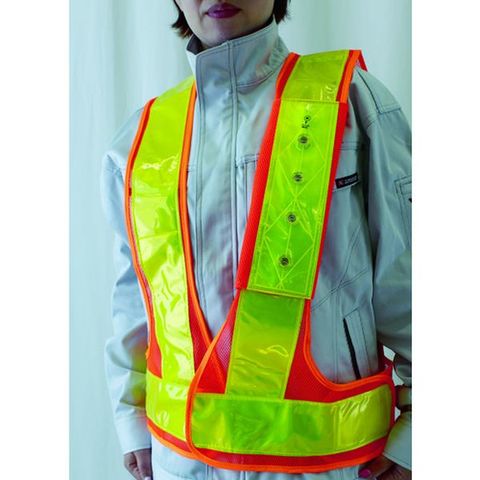 ・マジック式のテープでサイズ調節可能です。・70mm幅の反射材(黄色)、赤点滅LED付です。・今お持ちの安全ベストにLEDを後付けできる商品です。