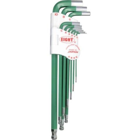 TLCS9NGR (株)エイト エイト 六角棒スパナ テーパーヘッド エキストラロング 単色カラーセットグリーン