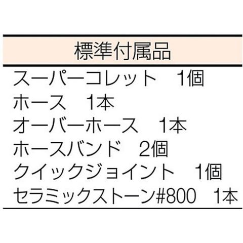 ・TLL-12[1本]・エアホース1.5m(ホースバンド2個付)[1本]・オーバーホース[1本]・クイックジョイント [1個]・スーパーコレット・セラミックストーン(#800)1枚・TLレンチ(2.5mm六角レンチ)