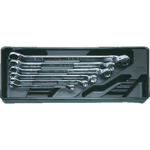 両口めがねレンチセット(6本組) インチ 12角 樹脂成形トレイ(W445×D185×H52)付き