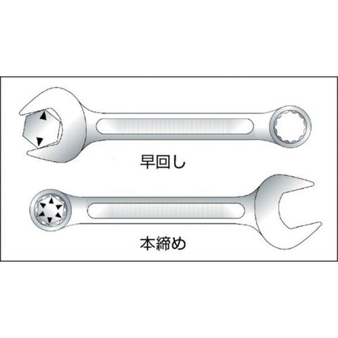 ・「新ヤリ型ヘッド」採用により、世界最小クラスのヘッド幅を実現しました。・めがね部は、KTC独自のパワーフィット形状です。・[[(R1)]]型断面構造採用で、軽量で、しなりに強くなっています。・サイズ表示は大きく見やすい鍛造浮き出し刻印です。・早回しに適したスパナと、強い力がかけられるめがねレンチの機能を兼ね備えています。・トルク伝達に優れています。