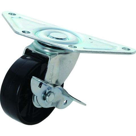・プレ-ト式・コーナーキャスター黒ナイロン車75径自在ストッパー式