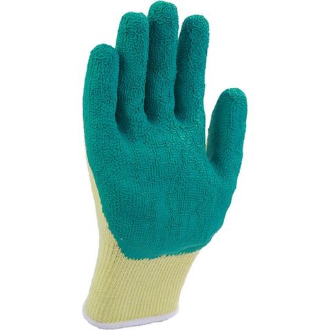 ・色:グリーン/イエロー・サイズ:L・全長(cm):26.9・手のひら周り(cm):28.4・中指長さ(cm):9.2・厚さ(mm):3.5・ゲージ数:10・EN388 2016規格:3434E・すべり止め:ラテックス・耐切創レベル:4E