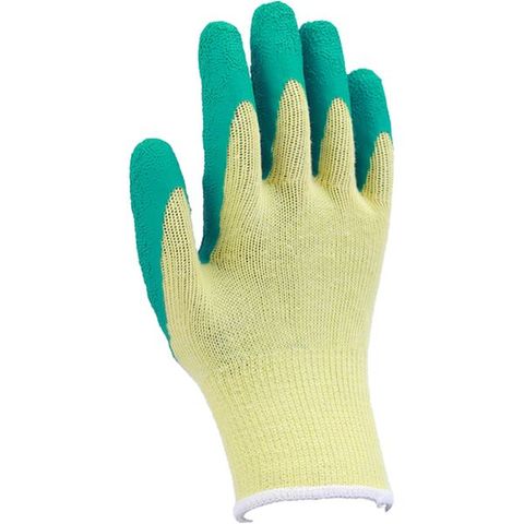 ・色:グリーン/イエロー・サイズ:M・全長(cm):26.5・手のひら周り(cm):28.0・中指長さ(cm):9.0・厚さ(mm):3.5・ゲージ数:10・EN388 2016規格:3434E・すべり止め:ラテックス・耐切創レベル:4E