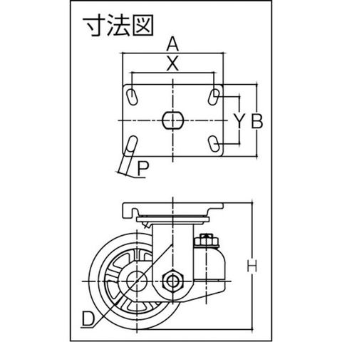 ・車輪径D(mm):203・タイプ:自在式・設定荷重(daN):1080・設定荷重(kgf):1102・車輪幅(mm):70・取付高H(mm):260・取付座A(mm):160・取付座B(mm):120・取付ピッチX(mm):130・取付ピッチY(mm):84・取付穴径P(mm):12・許容荷重(daN):1078.0・許容荷重(kgf):1100