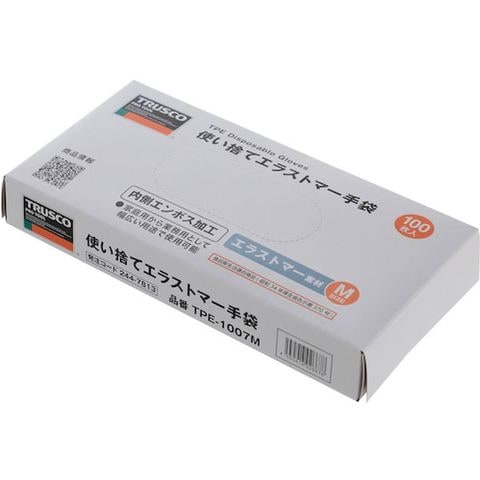 TPE1007M トラスコ中山(株) TRUSCO 使い捨てエラストマー手袋 内エンボス Mサイズ (100枚入)