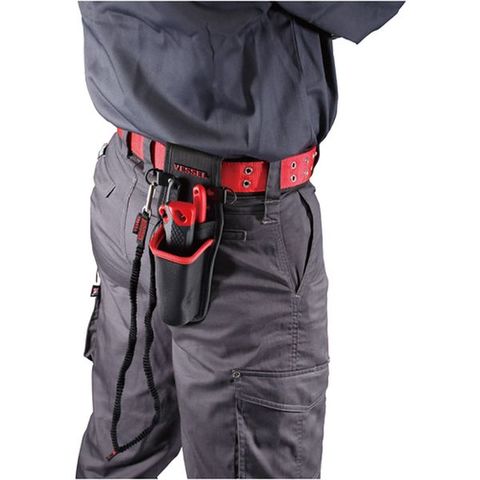 ・電工アジャストナイフ1本とワイヤーストリッパー1本を収納。・落下防止ワイヤーやカラビナが取り付けできるDリング付です。・ベルト幅60mmまで対応のベルト通しです。・電工アジャストナイフがスムーズに出し入れできるように差込口が斜めカットになっています。