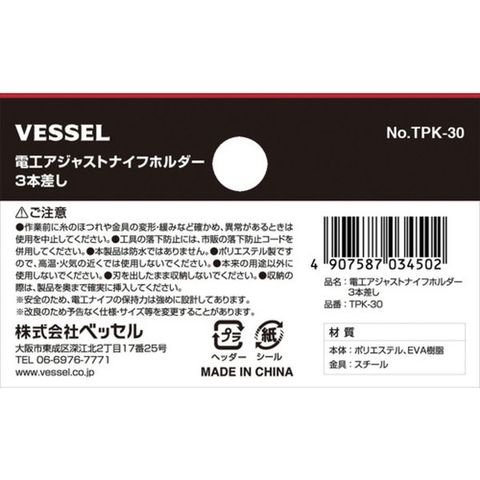 TPK30 (株)ベッセル ベッセル 電工アジャストナイフホルダー3本差し