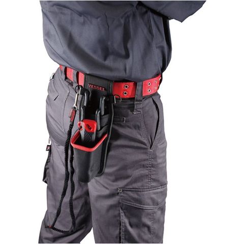 ・電工アジャストナイフ1本とペンチニッパー2本を収納。・落下防止ワイヤーやカラビナが取り付けできるDリング付です。・ベルト幅60mmまで対応のベルト通しです。・電工アジャストナイフがスムーズに出し入れできるように差込口が斜めカットになっています。
