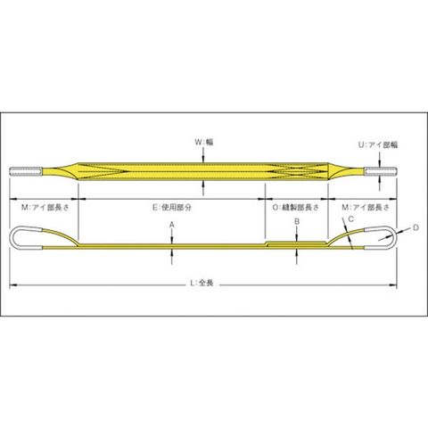 ・全長(m):5・ベルト寸法(mm)幅×厚さ:75×8・アイ部幅(mm):42・アイ部長さ(mm):410・アイ部厚さ(mm):13・縫製部長さ(mm):300・色:イエロー・最大使用荷重(t):2.5