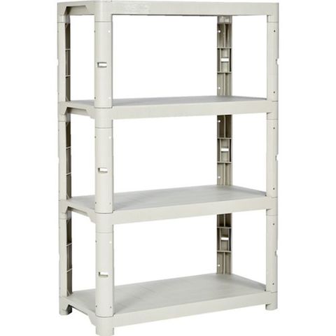 ・脚は棚板内にワンタッチで収納可能です。・(棚1枚につき脚4本収納可能)・脚部には倒れ対策としてボルト固定用の穴を設け、棚長辺・短辺各々隣との連結ができます。・棚板表面にシボ加工をほどこし、荷物のズレを防止します。・脚側面、棚板側面等にもシボ加工をほどこしたことにより、高級感あるマットな質感を実現、汚れや傷も目立ちにくくなっています。・プラスチック製のため軽量、また工具不要で組み立ても簡単です。