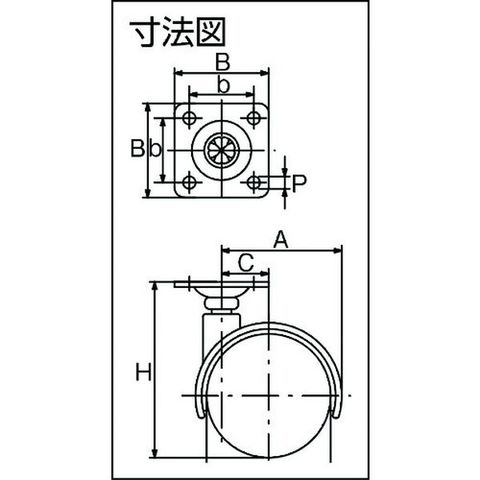・車輪径D(mm):40・タイプ:自在式・許容荷重(daN):30・許容荷重(kgf):31・車輪幅(mm):42・取付高H(mm):55・取付座A(mm):38・取付座B(mm):38・取付ピッチX(mm):25・取付ピッチY(mm):25・取付ピッチb(mm):25・取付穴径P(mm):5・色:ブラック