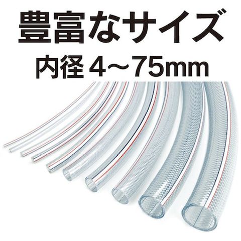 ・【多目的耐圧ブレードホース】水・油・薬品・エア等様々な流体で使用可能な耐圧ブレードホースです。・【透明性】透明性が良く、流体の確認ができ安心です。・【長持ち】ホース内面が耐油性に優れ、硬くなりにくいです。・【柔軟性】しなやかで継手に挿入しやすいです。・【豊富なサイズ】サイズバリエーションが豊富な耐圧ブレードホースです(内径4~75mm)。・【法適合】RoHS2修正規制適合で安全・安心です。