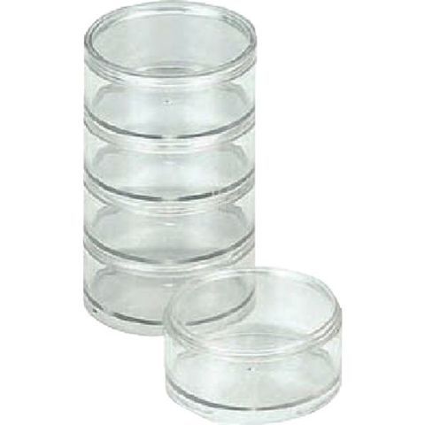 ・外形寸法(mm)奥行:70・外形寸法(mm)高さ:133・有効内寸(mm)幅:63・有効内寸(mm)奥行:63・有効内寸(mm)高さ:22・色:クリア・セット内容:本体:5段、フタ:1枚・5段外寸(mm)外径×高さ:70×133・1段有効内寸(mm)内径×深さ:63×22