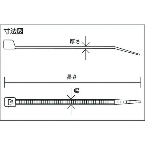 ・色:黒・幅(mm):2・長さ(mm):103・厚さ(mm):0.9・最大結束径(mm):22・引張強度(N):78.4・一度締めると、切断しない限り外すことはできません。