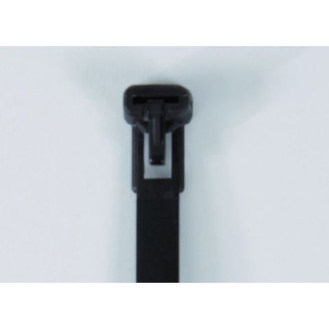 ・色:黒・幅(mm):7.6・長さ(mm):303・厚さ(mm):1.3・最大結束径(mm):89・引張強度(N):539・一度締めた後でも、手で緩めたり、再度締めたりすることができます。