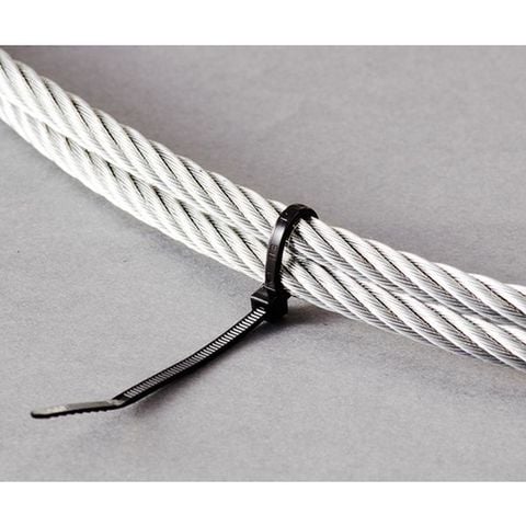 ・色:黒・幅(mm):2.5・長さ(mm):99・厚さ(mm):1.1・最大結束径(mm):22・引張強度(N):80・一度締めると切断しない限り外す事はできません。