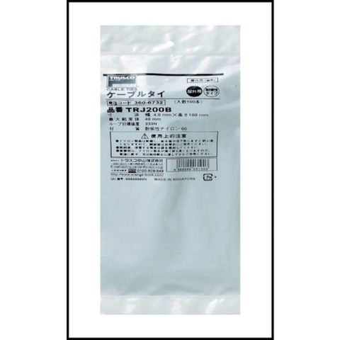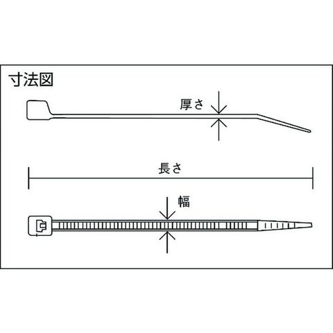 ・目通しがとても軽く、耐衝撃性に優れた標準タイプの結束バンドです。・屋外使用に適しています。・スムーズな目通しできっちりしまり、様々な方法で使用できる汎用性の高いナイロン結束バンドです。・サイズが豊富でφ22mmからφ229mmまでの結束が可能です。