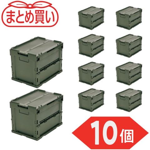 TRSC20OD10P 【まとめ買い】オリコン α折りたたみコンテナ フタ付 20L OD色 10個