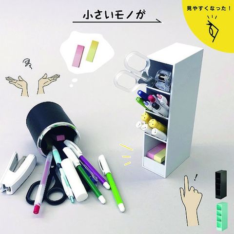・限られたスペースに便利な、縦置き・横置き両用のペンスタンドです。・仕切り板には斜めの傾斜がつき、ペンが交差することなくスムーズに出し入れすることができます。・4段に分かれた収納スペースは、筆記具だけでなく消しゴムやはさみなども分別可能。・筆記具だけでなく、工具やアクセサリーなどの小物収納に大変便利な商品です。・デスク周りをすっきりと整理することができるツールスタンドです。