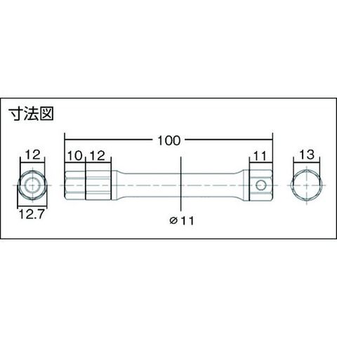・品名:継足ソケットアダプター・差込角(mm):13・全長(mm):100・摘要:呼び13用・適用:呼び13用・B寸法(mm):12.7・A寸法(mm):12